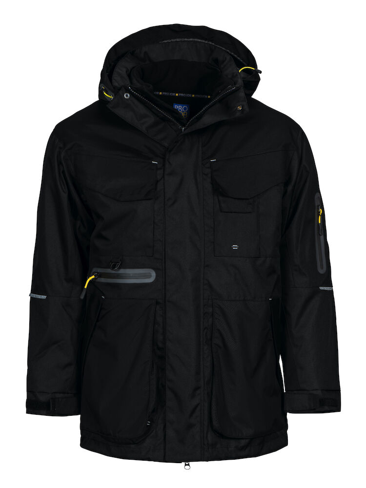 ? twee gelamineerde zakken met waterdichte ritssluiting: ??n op de linkermouw en ??n onder de rechter borstzak.