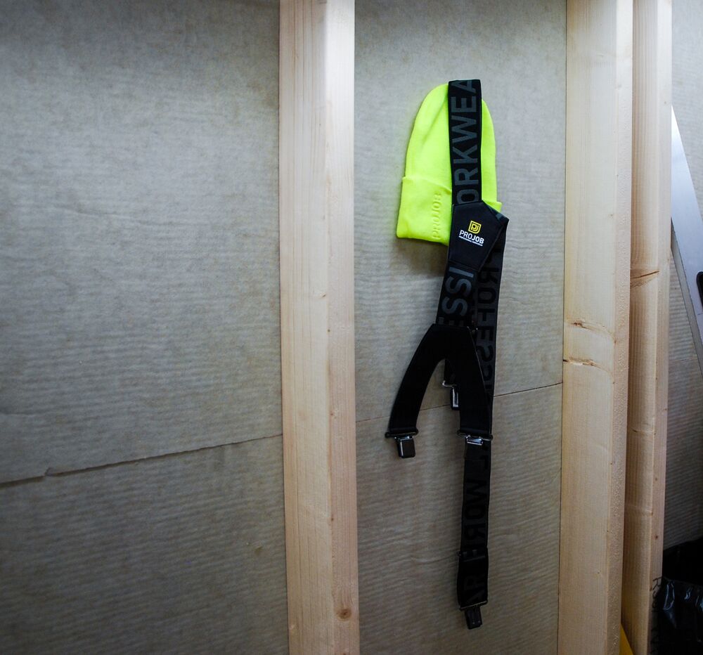 ? gebreide muts met grote flap ? discreet reli?f Projob logo op de flap ? gerecycleerde polyester